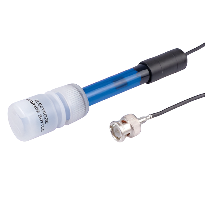 pH-электрод представляет собой заполненный гелем комбинированный электрод Ag- AgCl в пластиковой оболочке. Электрод поставляется во флаконе с раствором для хранения. Раствор не пополняется. Подключение к датчику рН осуществляется посредством коаксиального кабеля с BNC-штекером.