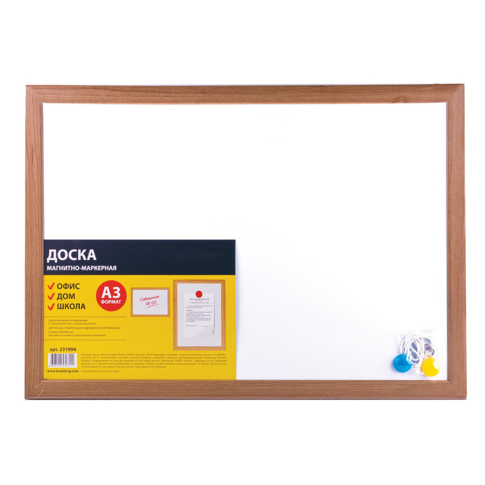 Доска магнитно-маркерная Brauberg, А3, 342x484 мм