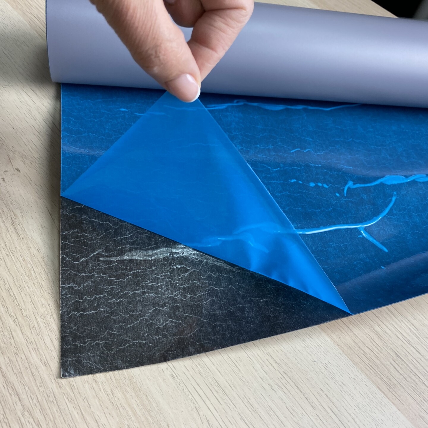 • защитную пленку заранее не снимать, удалить пленку с задней поверхности не более 10 см и равномерно приклеить, далее одновременно снимая пленку разглаживать поверхность сверху вниз или справа налево.