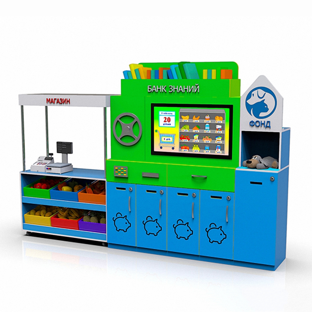 Профессиональный комплекс-тренажер «Банк Знаний» — это современное интерактивное оборудование, предназначенное для обучения детей различных возрастов основам финансовой грамотности. Комплекс объединяет в себе инновационные технологии, интуитивно понятную конструкцию корпуса, а также широкие функциональные возможности, позволяющие педагогу обучать детей по всем актуальным направлениям образовательной программы.