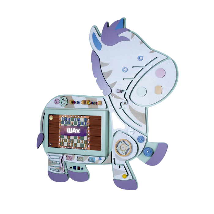 На центральной части «Зебруши» находится интерактивная сенсорная панель с комплектом программ по правилам дорожного движения. Дополнительно установлено лучшее программное обеспечение, с более чем 200 игр по различным образовательным тематикам, которые сделают процесс познания увлекательным и эффективным.