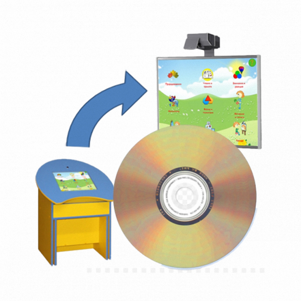 Все сенсорные терминалы, интерактивные столики, панели и парты «Волшебный Экран» имеют возможность подключения к интерактивным доскам любых производителей. При этом, на интерактивную доску транслируется изображение с экрана интерактивной парты (терминала) и можно пользоваться учебно-игровым пакетом программ на интерактивной доске, работая с неограниченной группой детей.