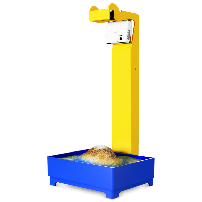 Это развивающий комплекс, который объединяет в себе возможности интерактивной песочницы и сенсорного стола. Технология дополненной реальности превращает обычный песок в земную поверхность с озёрами и горами, вулканами и долинами. Дополнительные панели позволяют проводить занятия в режиме сенсорного стола.