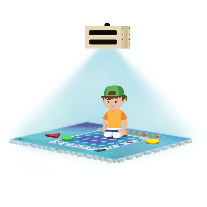 Во время игры ребёнок взаимодействует не только с дополненной реальностью, но и с реальными физическими предметами - геометрические фигуры (круг, квадрат, треугольник; 2 размеров).