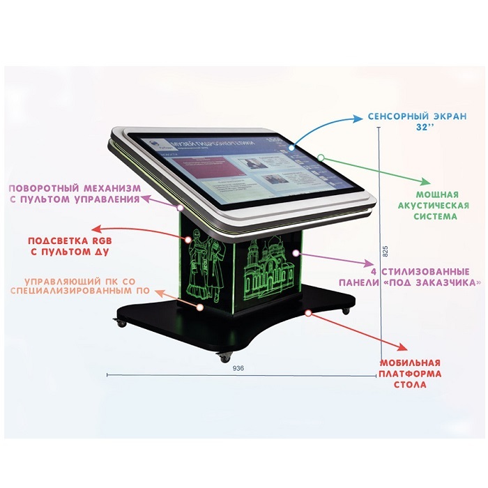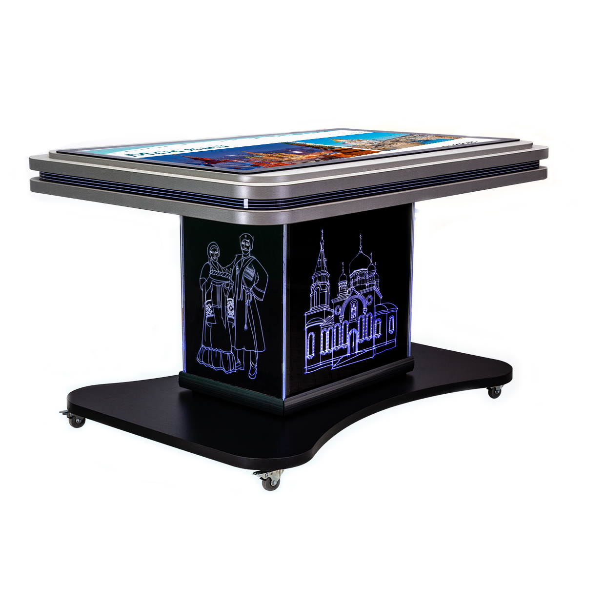 С помощью интерактивного мультимедийного стола легче подавать информацию детям и подросткам. Его диагональ позволяет работать как небольшим группам, так и одиночным посетителям. Так как интерактивный поворотный стол Laser имеет мобильную платформу-основание, то его можно легко перемещать и устанавливать в удобном месте.