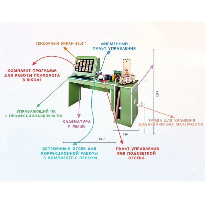 Наша команда рада представить стандартную версию интерактивного стола психолога, который представляет собой автоматизированное рабочее место педагога-психолога. Коррекционный стол психолога создан для пополнения материально-технической базы кабинета психолога в общеобразовательных школах, а также для расширения развивающей и коррекционной предметной среды.