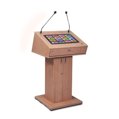 Встроенный в столешницу высокопроизводительный компьютер работает на ОС Windows 10, что позволяет докладчику без труда воспроизводить файлы различного формата. Мультимедийный цифровой подиум оснащен удобным сенсорным дисплеем диагональю 21,5 дюйма. Также для быстрого подключения микрофона и flash-накопителя в столешнице предусмотрены usb-разъемы.
