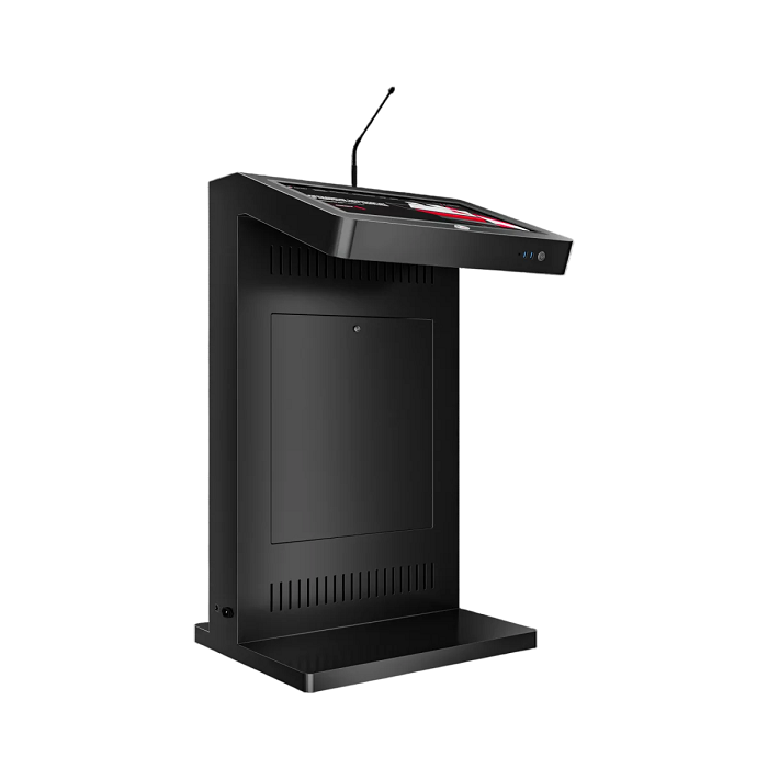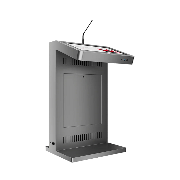 Мультимедийное решение, которое позволяет не только ярко выступить на большую аудиторию, с отображением презентационного материала, но и эффектно продемонстрировать рекламную информацию о компании, предлагаемых товарах / услугах, спикере, на большом внешнем дисплее трибуны. Модель Double 21,5" оснащена мощным микрофоном, сенсорным дисплеем для спикера, а также большим внешним дисплеем для рекламного контента и набором разъемов для подключения дополнительной техники. Такая трибуна станет прекрасным помощником на конференциях, выставках, спортивных мероприятиях или других мероприятиях, где требуется визуальная поддержка презентаций и общение с аудиторией.