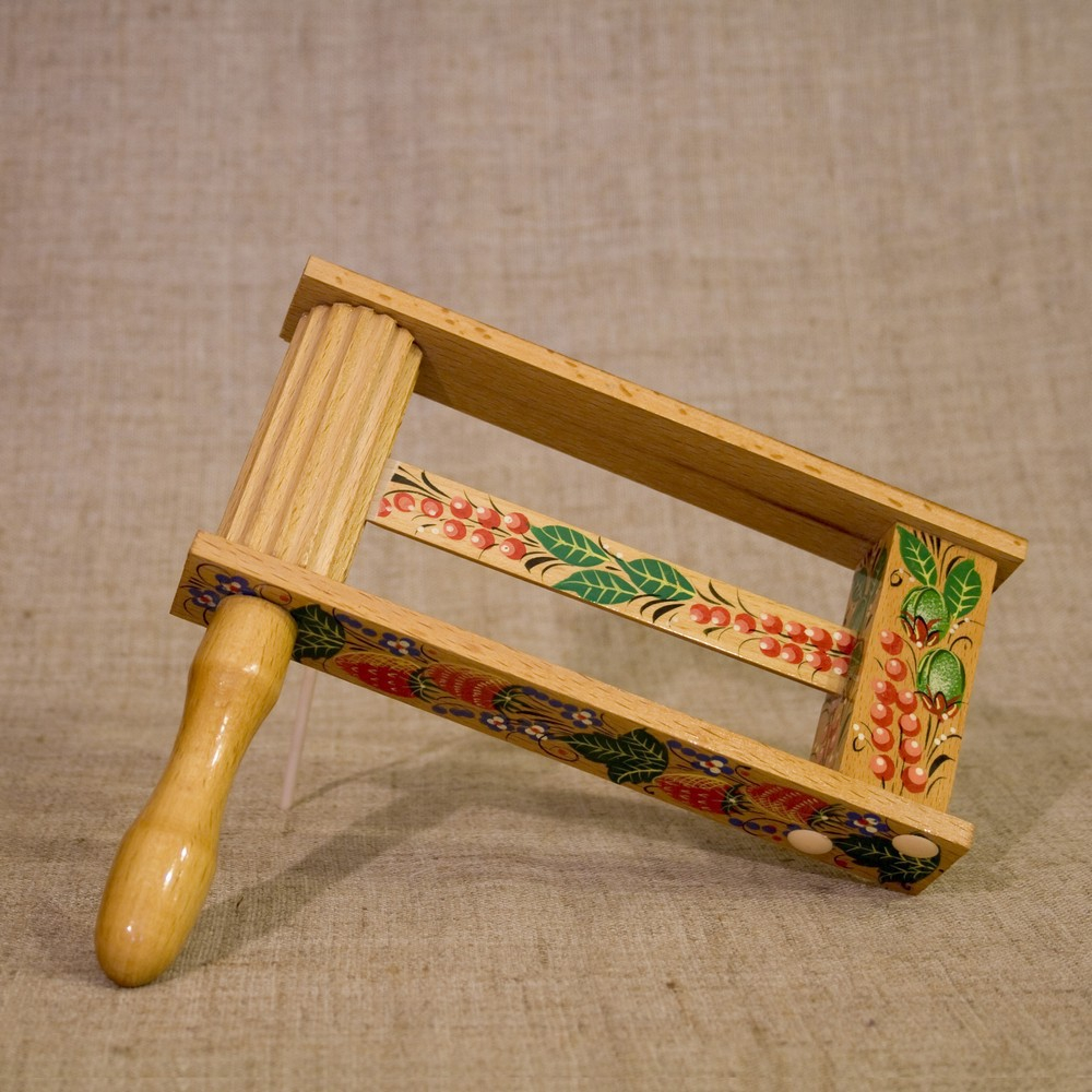 Трещотки расписаны Хохломской и Городецкой росписью на предприятиях нижегородских художественных промыслов.