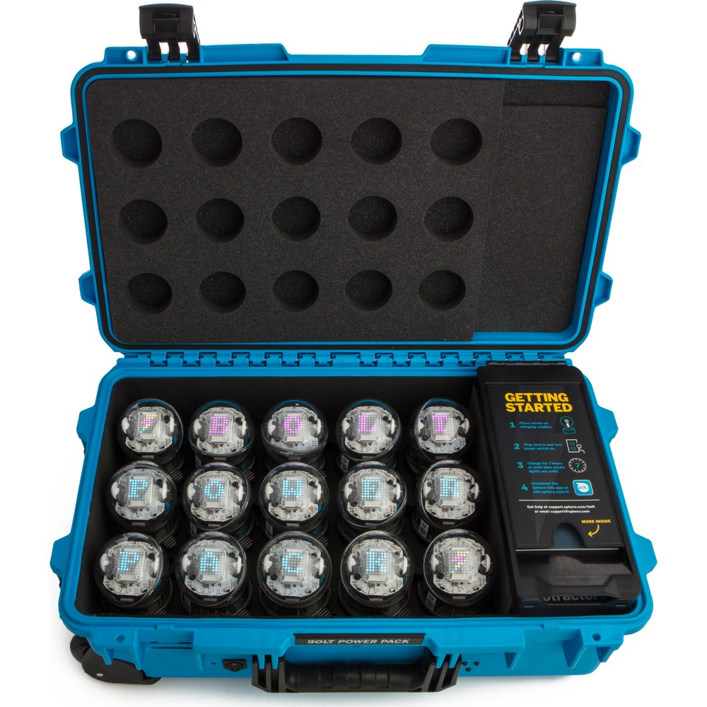 Данный набор представляет из себя переносной чемодан, внутри которого 15 устройств Sphero и аксессуары для организации учебного процесса в любом месте. Чемодан позволяет заряжать устройства Sphero.