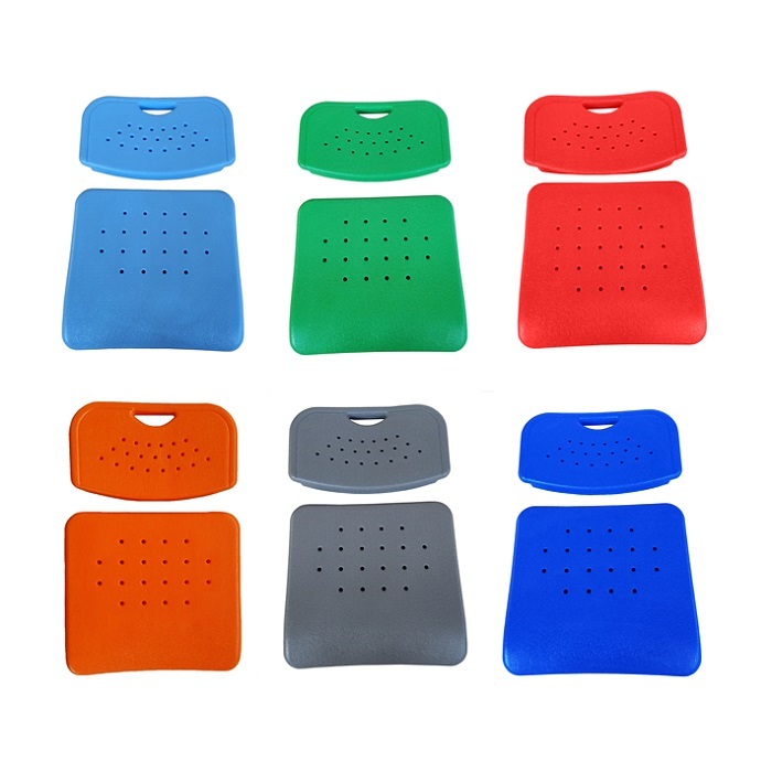 Спинка и сиденье изготовлены из антивандального двухстороннего дышащего полиэтилена высокой плотности (HDPE). Спинка и сиденье имеют внутренние ребра жесткости в виде сквозных отверстий. Количество ребер жесткости на спинке 21. Количество ребер жесткости на сиденье 20. Пластиковая спинка имеет эргономичное отверстие для захвата и перемещения стула. Крепление производится путем скрытого винтового соединения (несквозного).