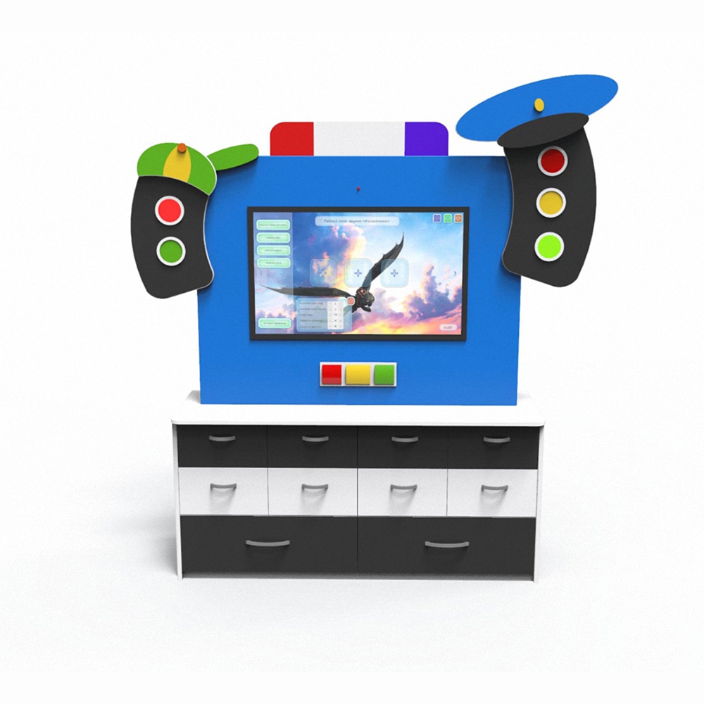 Выполненный в декоративном корпусе ЛДСП со шкафчиками и выдвижными ящиками он станет незаменимым программно-аппаратным комплексом в любом детском саду, начальной школе, интернате, сенсорной комнате. Для организации увлекательных и познавательных занятий в устройстве предусмотрено 340 приложений и 14 специализированных игр, которые работают с технологией "Kinect".
