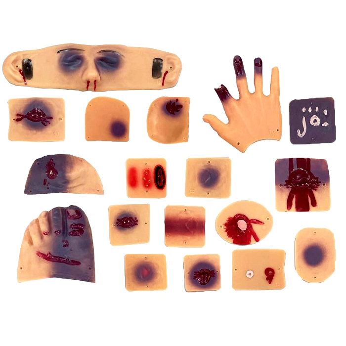 Набор имитаторов ран и поражений предназначен для демонстрации различных ранений и повреждений производственно-бытового назначения. Набор может быть использован для обучения спасателей МЧС, спасателей-пожарных, студентов по курсу «Криминалистика», «Судебная медицина», «Следователь- криминалист», на курсах обучения оказанию первой доврачебной помощи и так далее.