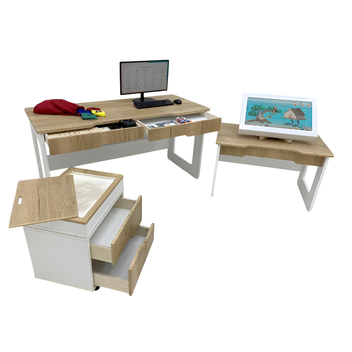 Стол психолога-дефектолога «ПРО» – это профессиональный стол с отдельным рабочим местом для специалиста психолога-дефектолога.