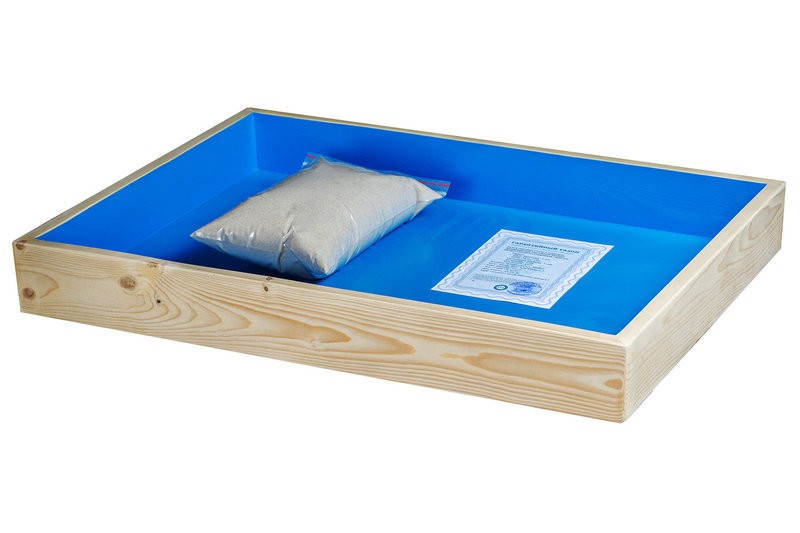 1) Песочница с голубым дном и бортами (70*50*10см) - идеальный размер для юнгианской песочной терапии.