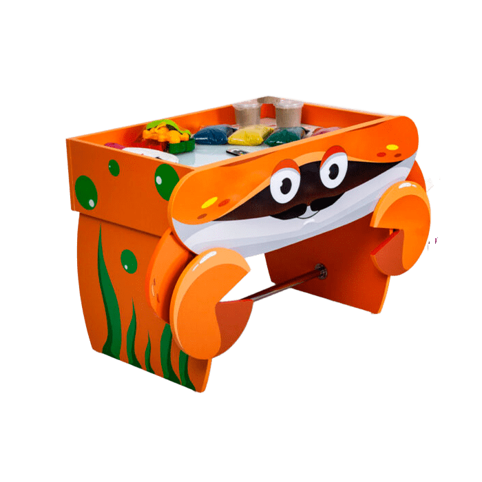 Яркий стилизованный стол для песочной анимации, выполненный в виде краба, будет отличным решением для творчества и развития мелкой моторики детей. Благодаря яркому дизайну, планшет для песочной анимации замечательно впишется в интерьер детской комнаты или кабинетах психолога и логопеда.