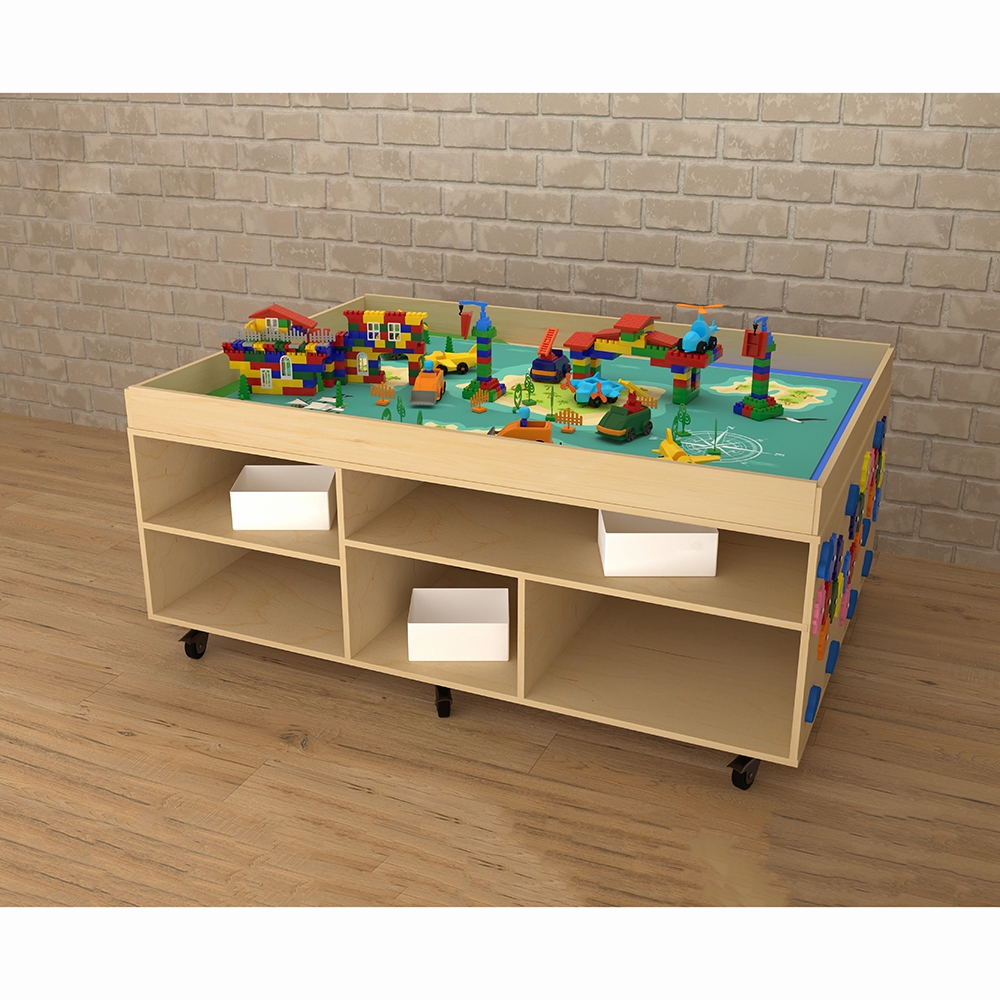 STEAM-стол “Море, суша и лес-3” – многофункциональный развивающий детский игровой модуль. Рациональное использование имеющихся площадей – его основная особенность. На столешнице размещается ландшафтная локация, а по бокам стола – математическая панель и ространство для хранения развивающих игр; это делает его необходимым элементом оснащения пространства для занятий с детьми. Стол имеет колёсики – это позволяет без труда перемещать его сколько угодно раз по помещению. STEAM столы широко используются дошкольными педагогами и некоторыми узкими детскими специалистами – логопед, дефектолог, психолог – для групповых и индивидуальных занятий с детьми дошкольного и младшего школьного возраста.