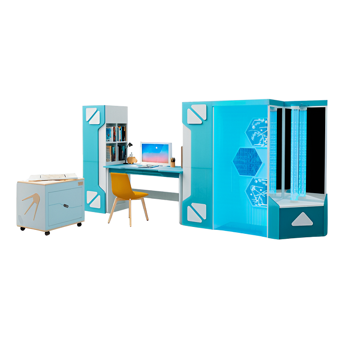 Комплекс включает встроенную световую песочницу, место под конструирование с мягким магнитным конструктором «МАККИ 37», место психологической разгрузки с фиброоптическим душем и воздушно-пузырьковой колонной, встроенную музыкальную систему и многое другое.