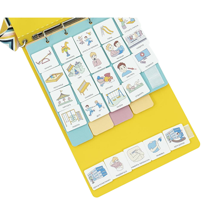 Инструмент для альтернативной/дополнительной коммуникации у детей, имеющих проблемы с речью (в том числе, РАС). Это пластиковая папка на кольцах, куда вкладываются жёсткие листы с рядами ленты-липучки велкро. На ленту приклеиваются карточки PECS/ПЭКС, служащие средством обмена информации между неговорящим ребёнком и взрослым.