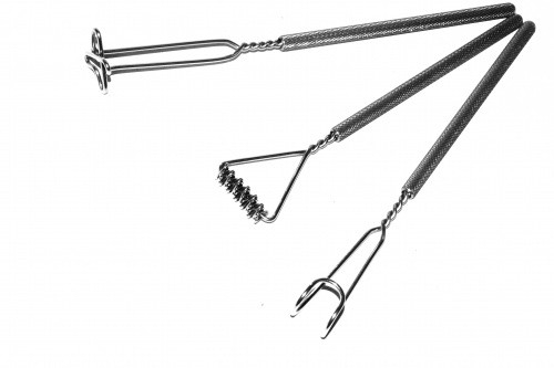 Набор для зондового массажа состоит из 3 инструментов (сверху-вниз: "крестовина" (Автор Новикова Е.В.), "логоежик" (автор Томилина С.М.),  "язычок" (автор Томилина С.М.).