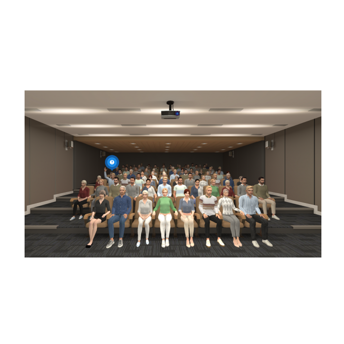 Тренажёр “Публичные выступления” в виртуальной реальности с системой анализа речи и жестикуляции ( Для устройств виртуальной реальности с 6DOF контроллерами) позволяет приобрести и развить навык общения с публикой. Пользователь находится на сцене зала перед аудиторией виртуальных зрителей. Он может загрузить на виртуальный экран свою презентацию и сопровождать свою речь сменой слайдов.
