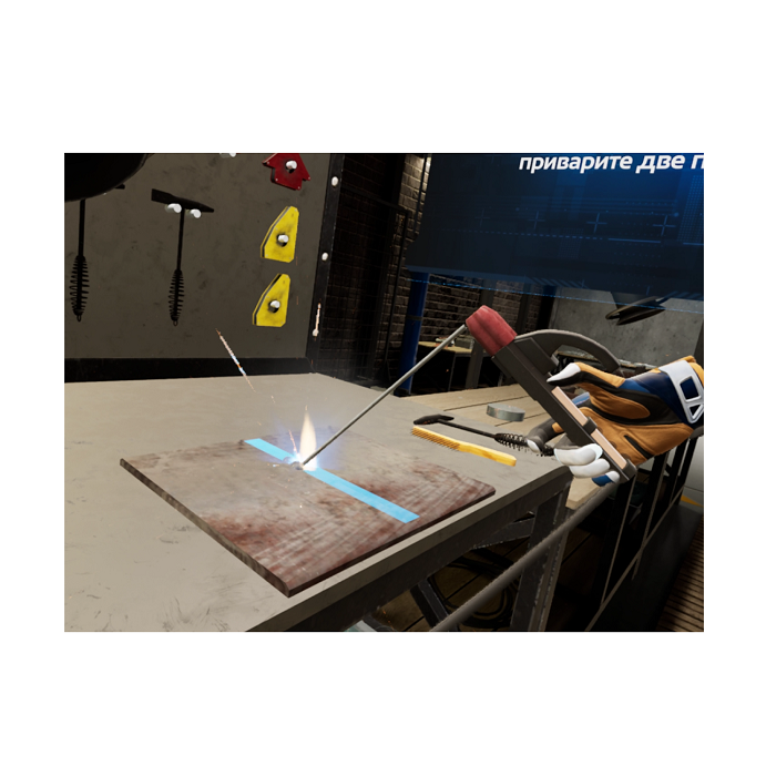 VR-тренажер «Электросварочные работы» воссоздает ситуацию, в которой пользователю необходимо ознакомиться с работой сварочного оборудования, необходимыми инструментами для работы и с возможными его неисправностями. В задании необходимо выполнить последовательную подготовку оборудования к работе. Выполнить работу. Убрать рабочее место. При работе использовать СИЗ, соблюдать технику безопасности.