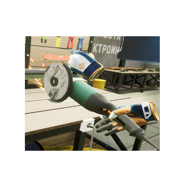 VR-тренажер «Работа с ручным электроинструментом» воссоздает ситуацию, в которой пользователю необходимо ознакомиться с работой четырех видов ручного электроинструмента и с возможными его неисправностями. Виды инструментов: электролобзик, электропила, углошлифовальная машинка, дрель/перфоратор. В каждом задании необходимо осмотреть ручной инструмент. Выполнить последовательную подготовку его к работе. Выполнить работу согласно типу инструмента. Убрать рабочее место. При работе использовать СИЗ, соблюдать технику безопасности.