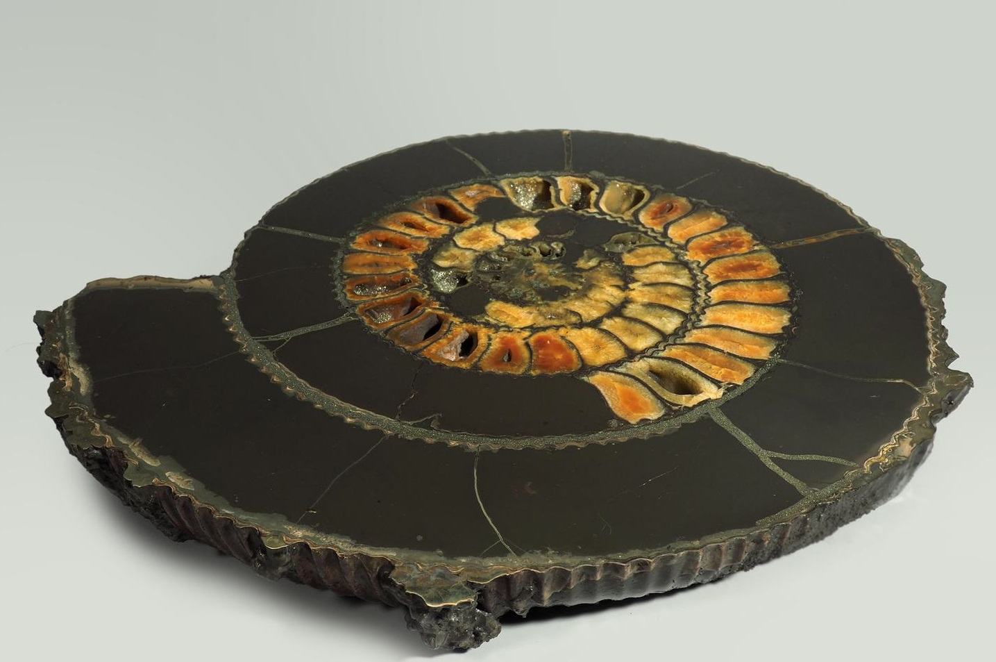 Аммонит пиритизированный, полированный срез 31,5х28х4 см - «globural.ru» - Рузаевка
