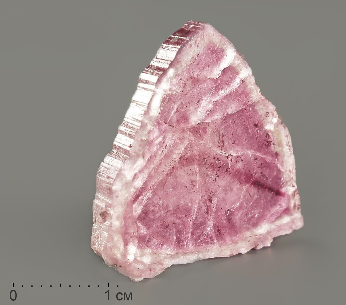 Срез турмалина (рубеллита), полированный с обеих сторон.