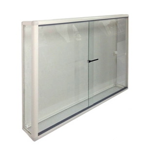 Стенд-витрина выполнен из алюминиевого профиля.Полки - стекло 6 мм. Дверцы и боковые части сделаны из безопасного оргстекла 4 мм.