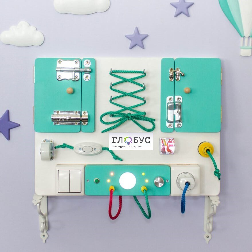 Бизиборд мини — досочка компактного размера, на которой собраны самые притягательные для ребенка предметы взрослого мира. Каждый элемент, замочек, кнопочка выполняют свою настоящую функцию. Это не только отличное средство развития мелкой моторики, но и развитие логики и причинно-следственных связей.