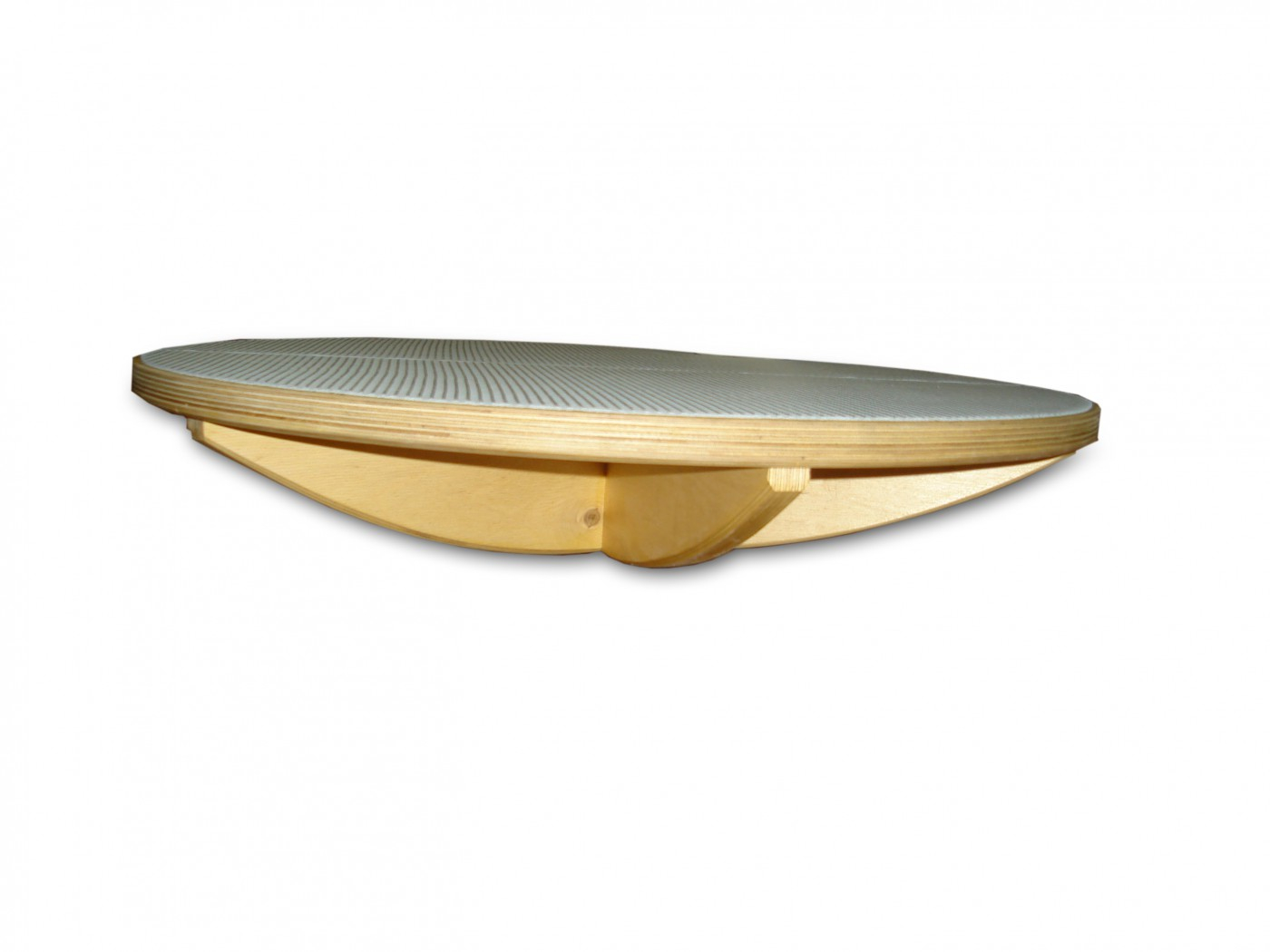 Изделие представляет собой сборную конструкцию, состоящую из горизонтальной плоскости, изготовленной из фанеры толщиной 15мм и крестообразной опоры из фанеры 15мм. Поверхность гладкая, покрыта лаком на водной основе, на верхней плоскости - покрытие из ковролина. Стоя на тренажере, ребенок балансирует, тем самым развивая вестибулярный аппарат и координацию движений.