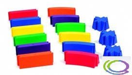 Дорожка состоит из 28 разноцветных деталей, которые можно соединить между собой в замкнутые пути, в форме кольца, а можно в форме четырехугольника с помощью 4 угловых крестообразных элементов. А можно обе формы одновременно. Дорожки изготовлены из прочного пластика с мягкими линиями против скольжения. Развивает моторику, баланс, физическое развитие.