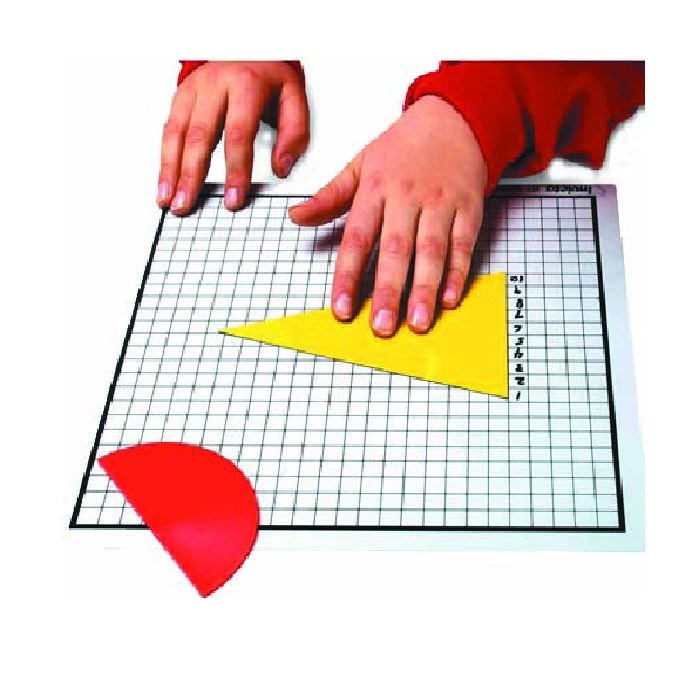 Описание: Расчерченный клетками 100х100мм гибкий пластиковый прозрачный лист 25х25см из моющегося материала удобен для подсчета площадей правильных и неправильных фигур, а также других математических упражнений.