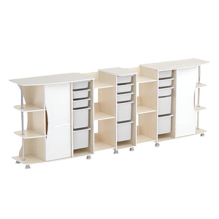 Из модульного стеллажа Робик 001 можно создать любую композицию для своего размера помещения, т.к. возможно приобретение каждого из элементов набора в отдельности.