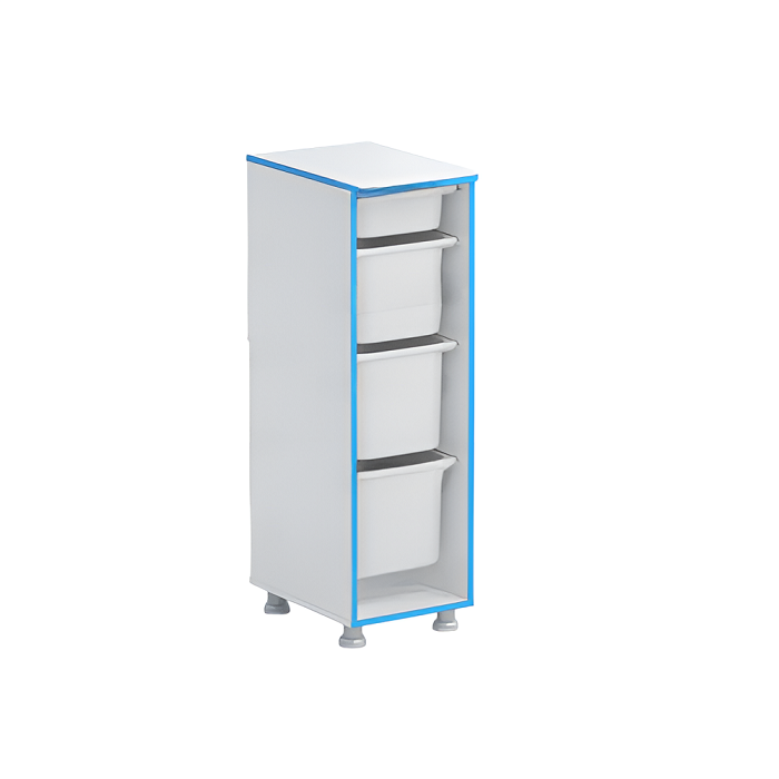 Стеллаж с лотками Робик 001 выполнен из ламинированной ДСП 16 мм, края обрамлены кантом ПВХ 2 мм. Внутреннее пространство стеллажа открыто.