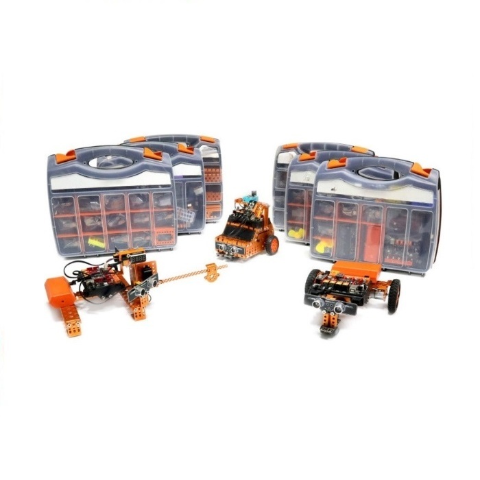Набор состоит из 6 ящиков в состав которых входит 4 ящика с электронными модулями и 2 ящика с металлическими элементами и крепёжными деталями.