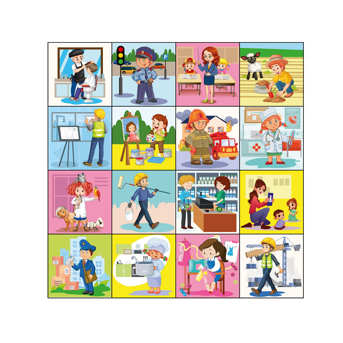 4)   Сочиняют мини-рассказы про то, как люди разных профессий ходят друг к другу в гости, останавливаясь в нужном квадратике с человеком определенной профессии или подавая световой сигнал.