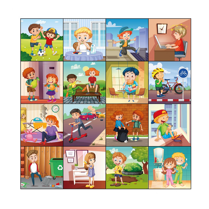 Каждая картинка рассказывает историю, вызывая интерес и любознательность у детей. На коврике можно увидеть, как правильно питаться, заниматься спортом, заботиться о личной гигиене и поддерживать экологию — например, убирать мусор, заботиться о растениях и животных. Эти сюжеты помогут детям осознать, как важны здоровые привычки для их роста и развития, а также для сохранения окружающей среды.
