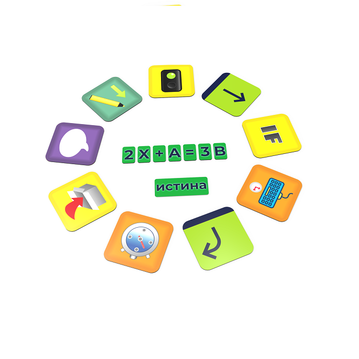 Наглядное пособие для обучения программированию в TRIK Studio с использованием магнитной доски. Набор подходит как для фронтального обучения, так и для работы в группах.