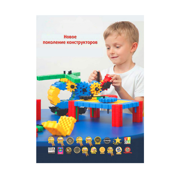 Серия образовательных конструкторов - обладатель главной отраслевой премии в сфере товаров и услуг для детей в России «Золотой медвежонок» 2019 года в номинации «Лучшие учебное оборудование и средства обучения».