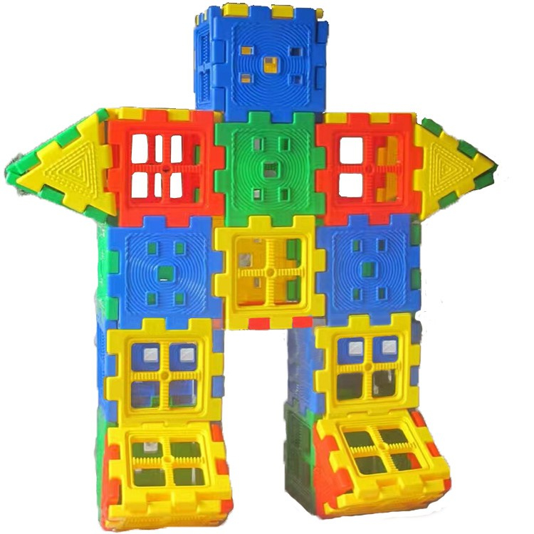 Этот комплект представляет собой настоящий объёмный пазл! Юные конструкторы могут смастерить себе всё, что подскажет фантазия, например, робота или домик. Комплект состоит деталей квадратной и треугольной формы с разным количеством и разного размера отверстиями, есть цельные элементы, но с рифленой поверхностью. Всё это положительно влияет на развитие тактильных ощущений у детей. У каждой детали есть внешние слоты, которые позволяют скрепить их между собой. Все элементы абсолютно безопасны для детского здоровья.
