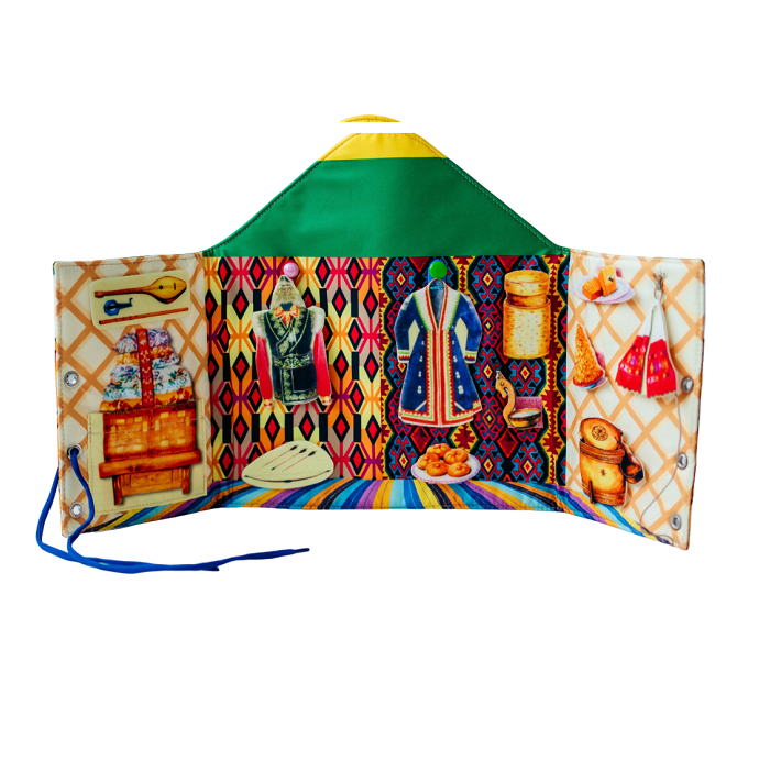Папка «Юрта башкирская» изображает внутреннее убранство юрты: предметы мебели, посуду, национальную одежду.
