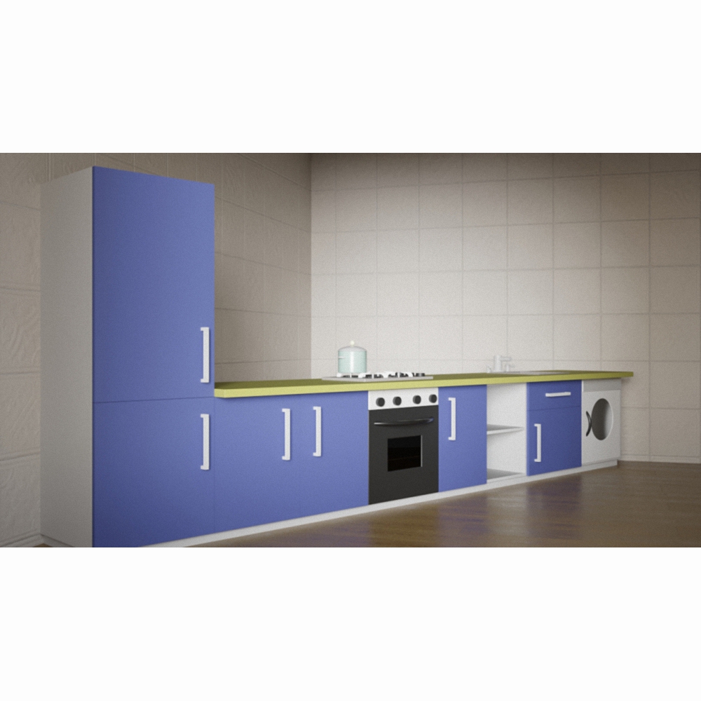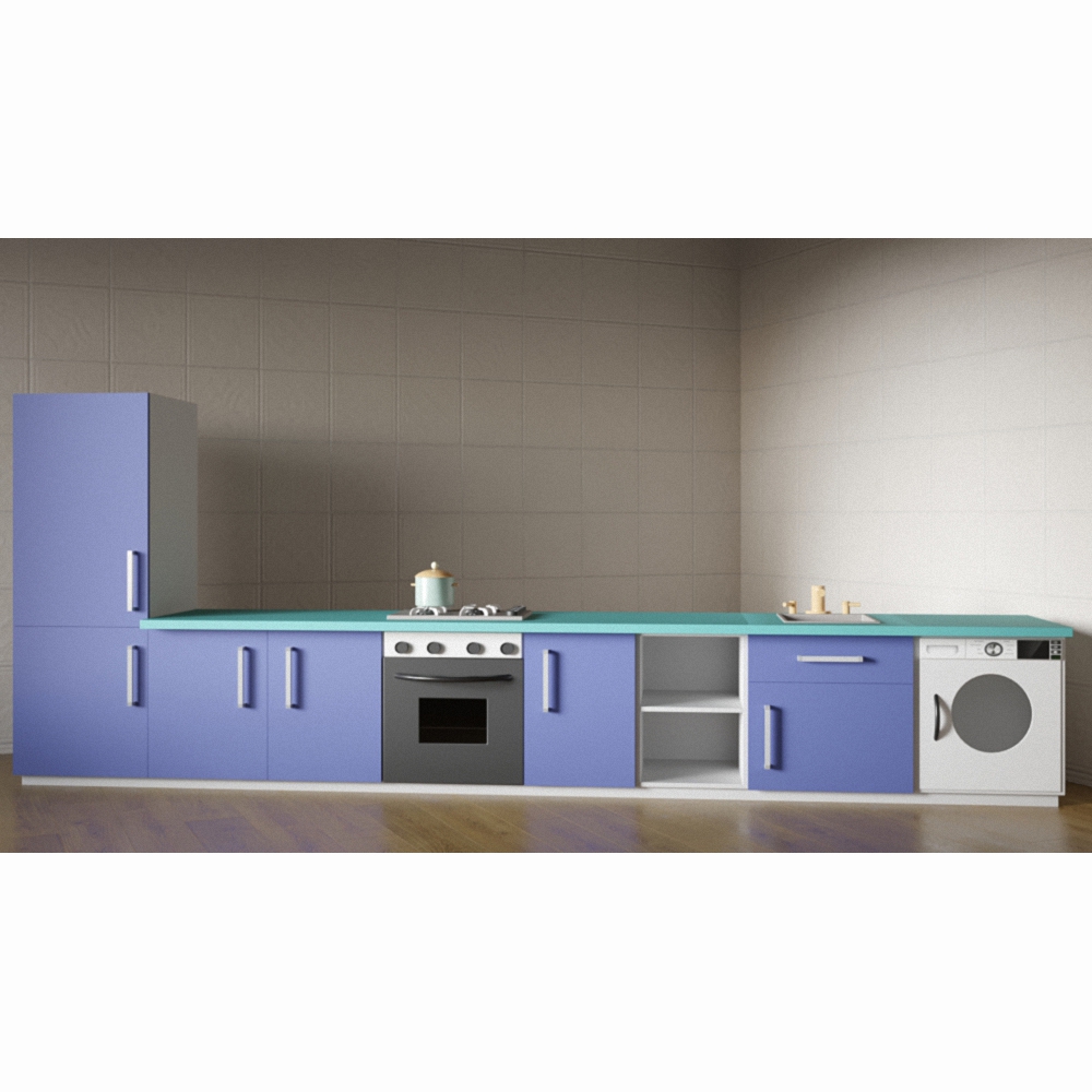 Детская кухня «Ирина» оснащена всем, что можно встретить на настоящей взрослой кухне – бытовая техника, столешницы, полочки, шкафчики и ящички. Фасад изготовлен из высококачественного материала и окрашен в насыщенный фиолетовый с минималистичными акцентами белого; столешница исполнена в бирюзовом цвете.