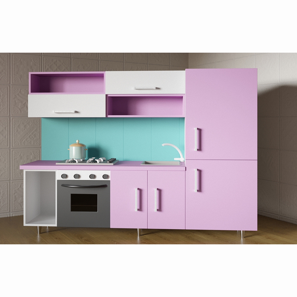 «Виктория» определенно создана для маленьких принцесс, ведь она такая нежная и милая! Мягкие оттенки лилового и бирюзового цветов немного разбавлены нейтральным белым, что в целом создает ощущение легкости и свежести. Компактная, легко поместится в небольшом помещении. Изготовлена из высококачественных материалов – это позволяет пользоваться кухней не один год.