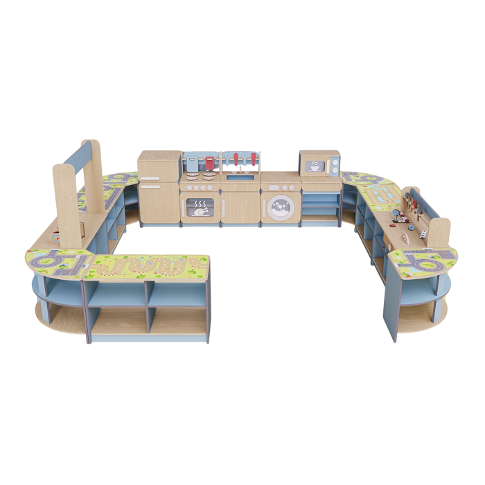 Главная Каталог Подготовительная группа и детский сад Мебель для детского сада Игровая мебель Игровая зона «Островок мастеров» из коллекции мебели «НЕГА» (голубой)