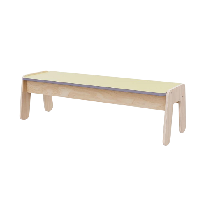 Благодаря использованию современных технологий и материалов, скамейка устойчива к износу и легка в уходе, что делает ее идеальным выбором для интенсивного использования в детских учреждениях.