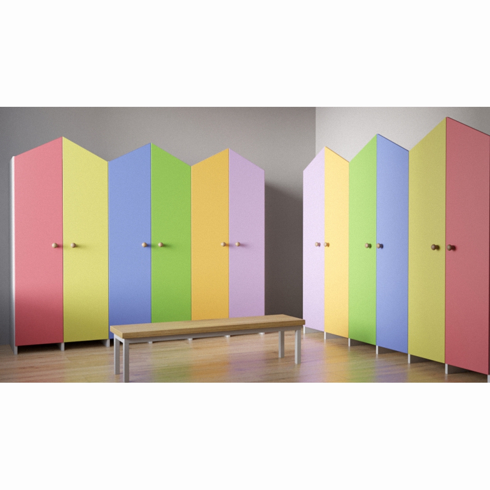 Детский гардероб «Я в домике» — универсальные стеллажи для детей разных возрастов, выполнены в виде парных домиков, которые оснащены элементами в виде крючков, нескольких полок для складывания одежды и обуви. Дети могут самостоятельно, без помощи взрослых, складывать свои вещи в шкафчик, развивая самостоятельность. Данная модель гардероба «Я в домике» выступает как специализированная мебель для детей, а главное может стать полезным дополнением к полноценному гардеробу в интерьере детского центра, детского сада, а также подойдет для специальных школ и интернатов.