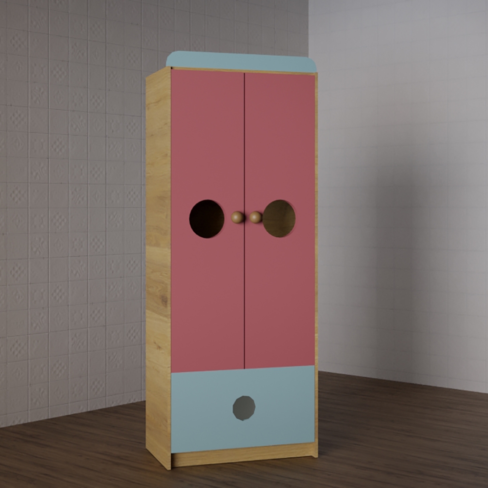 Детский шкаф выполнен в цветах, которые соответствует предпочтениям детей разного возраста.