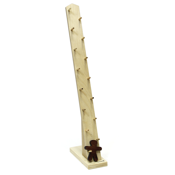 По деревянной подставке в виде «лесенки», переваливаясь с боку набок, спускается деревянный человечек.